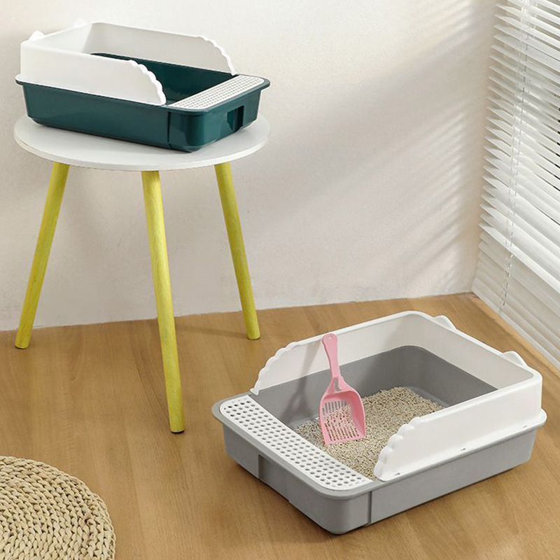 يتميز الجزء السفلي من صندوق فضلات القطط بتصميم مضاد للانزلاق، مما يزيد من الثبات ويمنع الانزلاق أثناء الاستخدام. بالإضافة إلى ذلك، يوفر صندوق فضلات القطط هذا أيضًا مجموعة متنوعة من خيارات الألوان، بما في ذلك الأبيض والرمادي والأزرق وما إلى ذلك، لتلبية تفضيلات المستخدمين المختلفين وأنماط الديكور المنزلي.