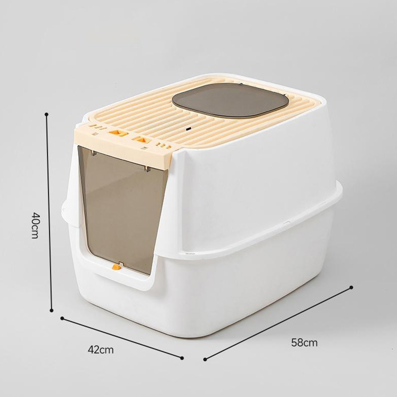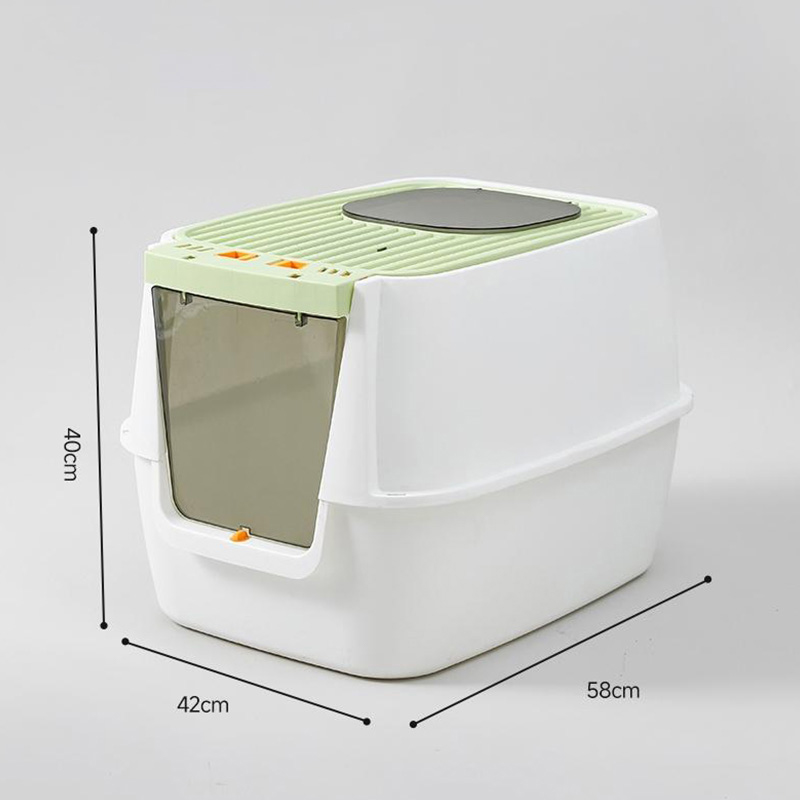 يعطي صندوق فضلات القطط المغلق بالكامل الأولوية للراحة والتطبيق العملي: تصميمه الفسيح يسمح للقطط بالتحرك بحرية، وتضمن الفتحة الكبيرة جدًا ذات الاتجاهين الدخول والخروج السلس ودون عائق. يعمل الهيكل المغلق على حبس الروائح بشكل فعال، مما يمنع الروائح الكريهة ويحافظ على بيئة حيوانك الأليف منعشة ونظيفة.