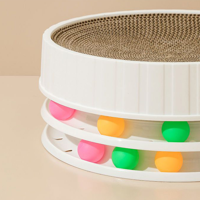 تتميز الطبقة العليا بملمس مموج يحاكي ملمس المواد الطبيعية، مما يشجع القطط على خدش وصقل مخالبها بشكل فعال. يمكن أن يساعد هذا الملمس أيضًا في إزالة الفراء السائب والحفاظ على صحة مخالب القطة. تضيف الطبقة السفلية، المجهزة بكرات ملونة، عنصرًا تفاعليًا يحفز غرائز الصيد لدى القطة، مما يجعلها ليست مجرد أداة خدش ولكنها أيضًا لعبة.