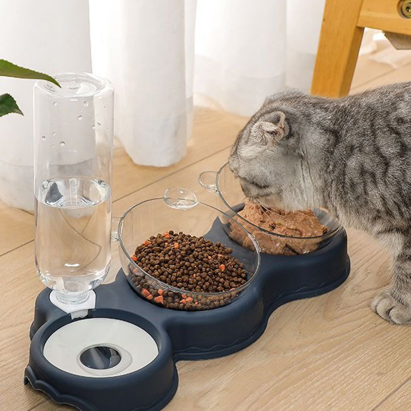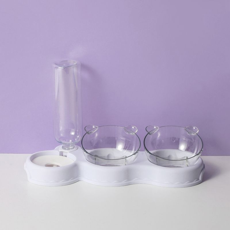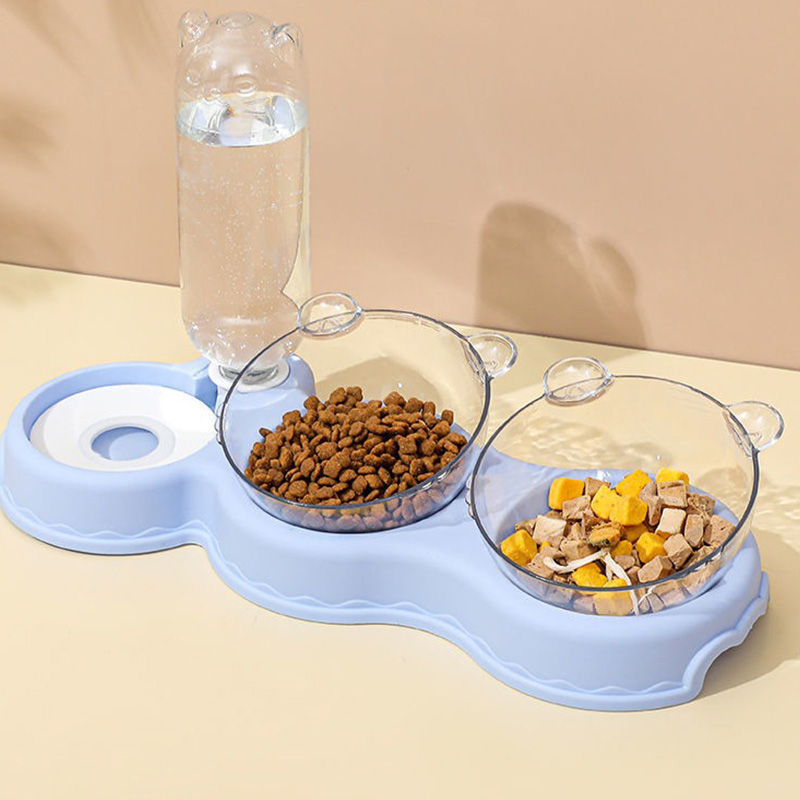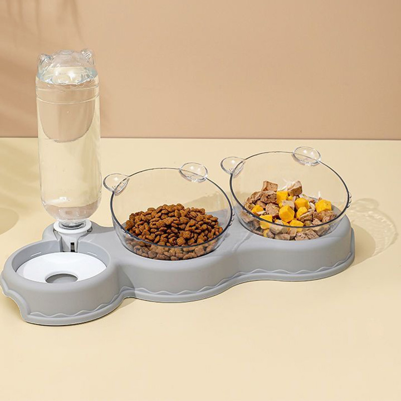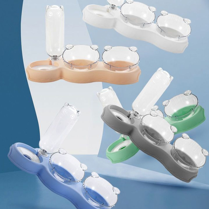 بالإضافة إلى وعاء الماء، تشتمل المجموعة على وعاءين منفصلين للطعام، مما يسمح لك بتوفير الماء والطعام في مكان واحد مناسب. وهذا لا يوفر المساحة فحسب، بل يسهل أيضًا إدارة روتين تغذية حيوانك الأليف.