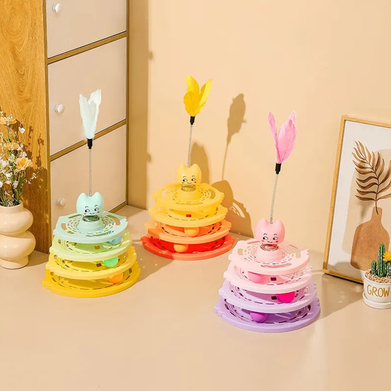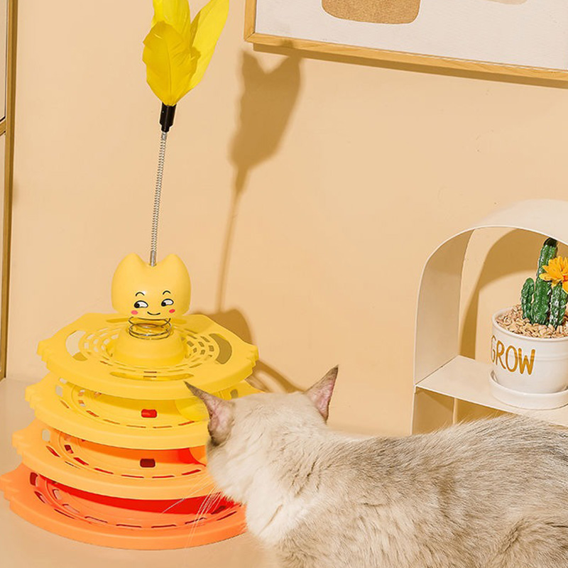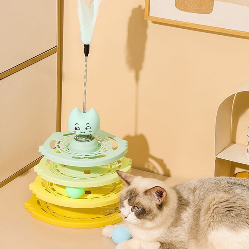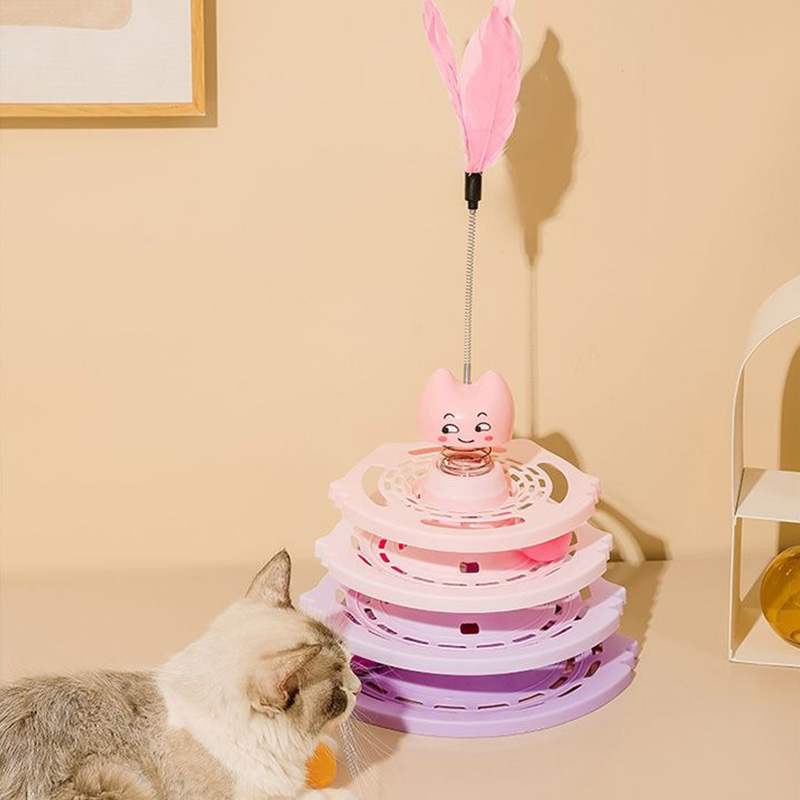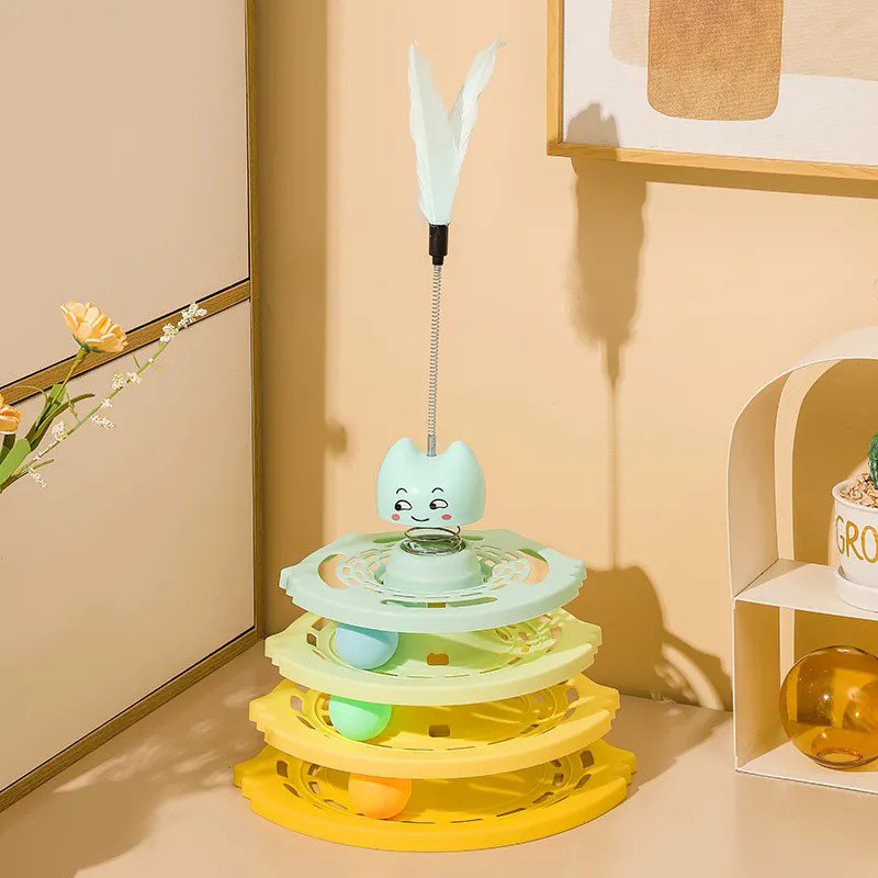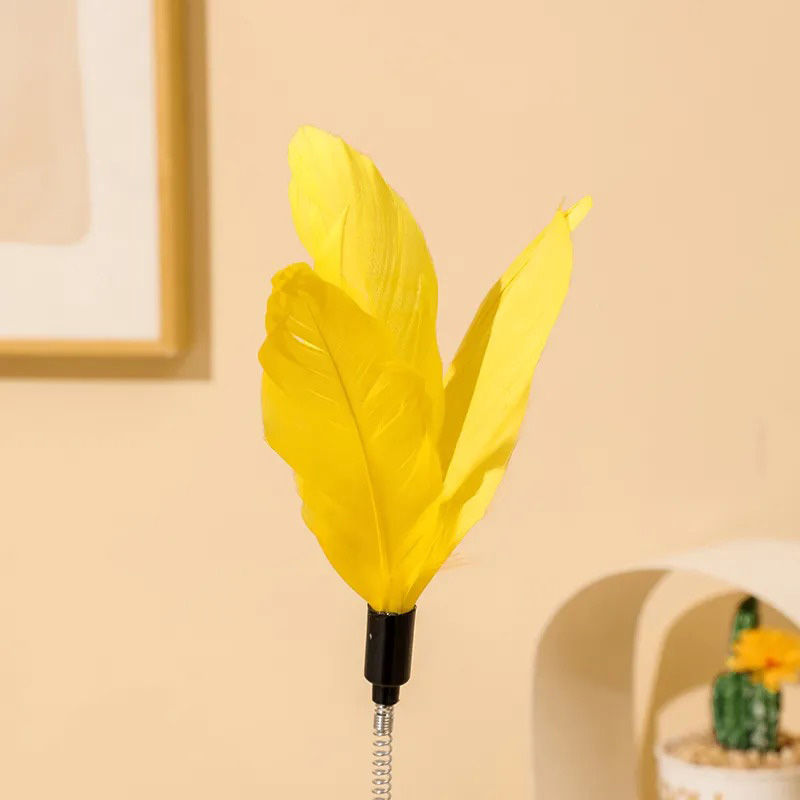 وفي الجزء العلوي من الهيكل، تتدلى عصا ذات ريش، تحاكي حركات الطيور أو الفرائس الصغيرة. تعتبر هذه الميزة جذابة بشكل خاص للقطط، التي تنجذب غريزيًا إلى حركة الرفرفة. تم تصميم حركة العصا لتحفيز غرائز الصيد لدى القطط، وتشجيعها على القفز والانقضاض والانخراط في سلوك مرح.