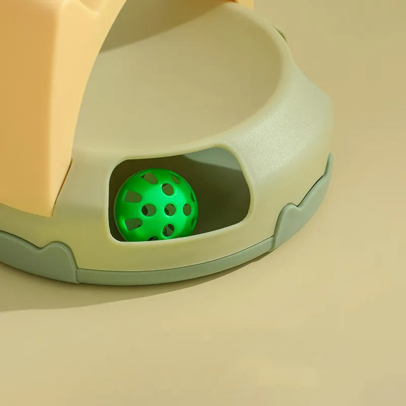 توجد نافذة شفافة في مقدمة كل لعبة، ويمكن رؤية أنماط مختلفة بالداخل، مثل الشخصيات الكرتونية الخضراء والبرتقالية والأرجوانية، مما يضيف متعة وجاذبية بصرية للعبة. إن التصميم المنحني في الجزء السفلي من اللعبة ليس جميلاً فحسب، بل قد يساعد القطط أيضًا في الحفاظ على التوازن أثناء اللعب.